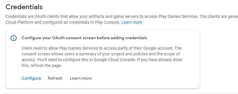 Google play console에서 google play games service 설정 중, google cloud를 이용한 OAuth 사용자 동의화면 구성을 했음에도 플레이 콘솔 단계가 안넘어가는 경우의 해결책.